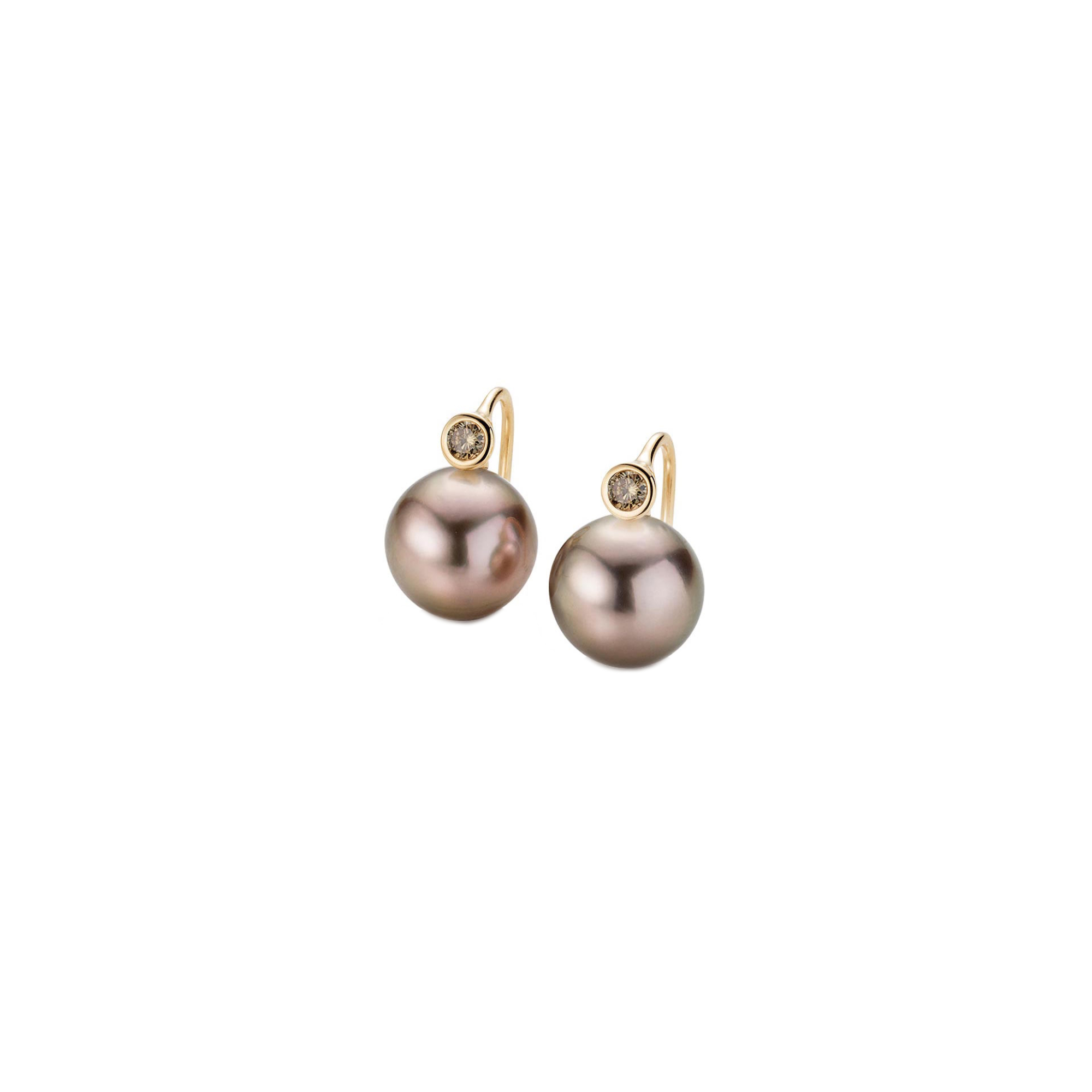 2 Tahiti-Zuchtperlen braun rund 11-12 mm, poliert