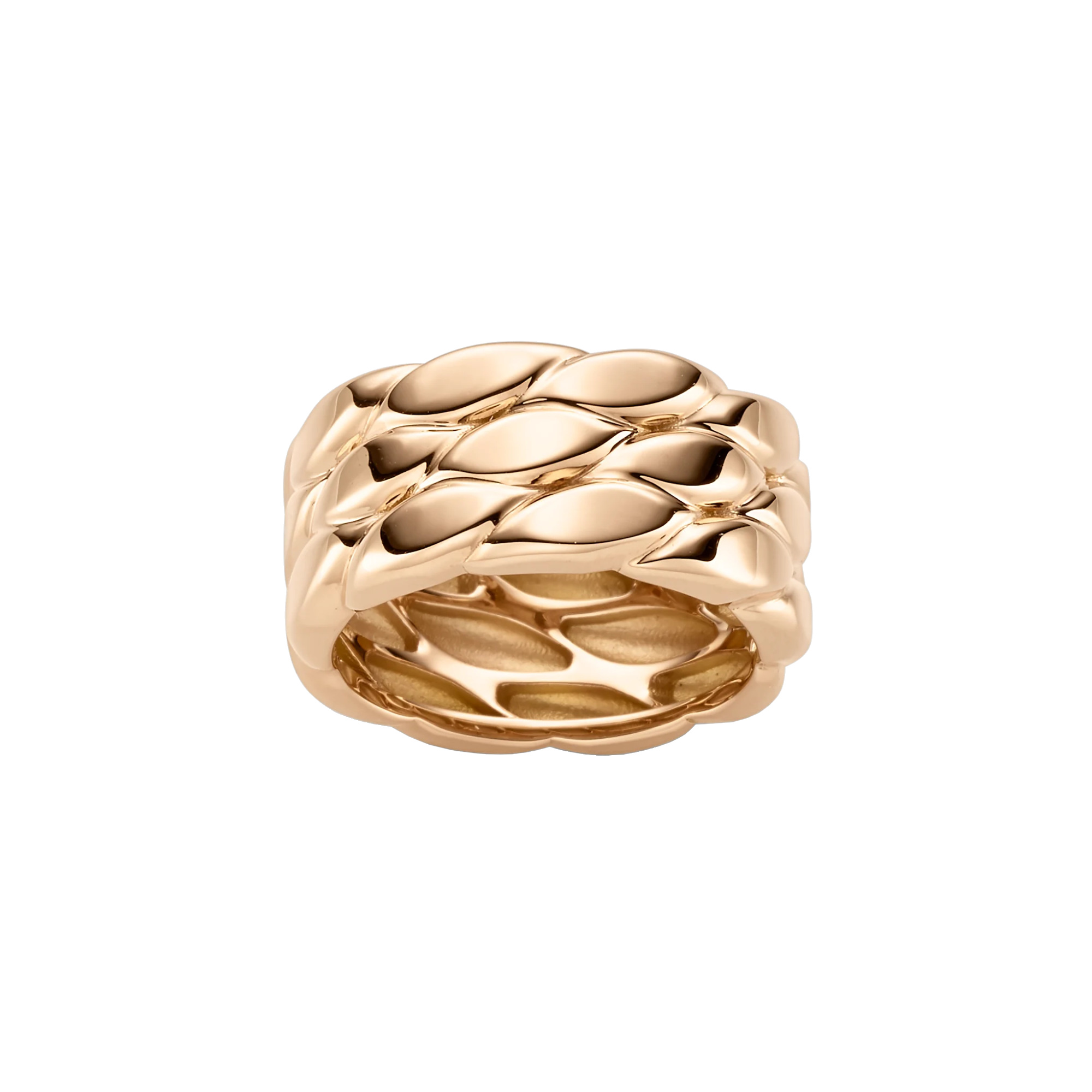 Ref. 14-1028573-0000 - Dieser elegante Ring setzt ein Understatement mit modernem Look-and-Feel. Seine puristische Optik aus geschwungenen Strukturen erinnert an ein Flechtmuster, was dem Ring einen interessanten Ausdruck verleiht. Das Licht fließt weich über die polierte Oberfläche und rückt die Schönheit des Roségoldes in den Fokus.