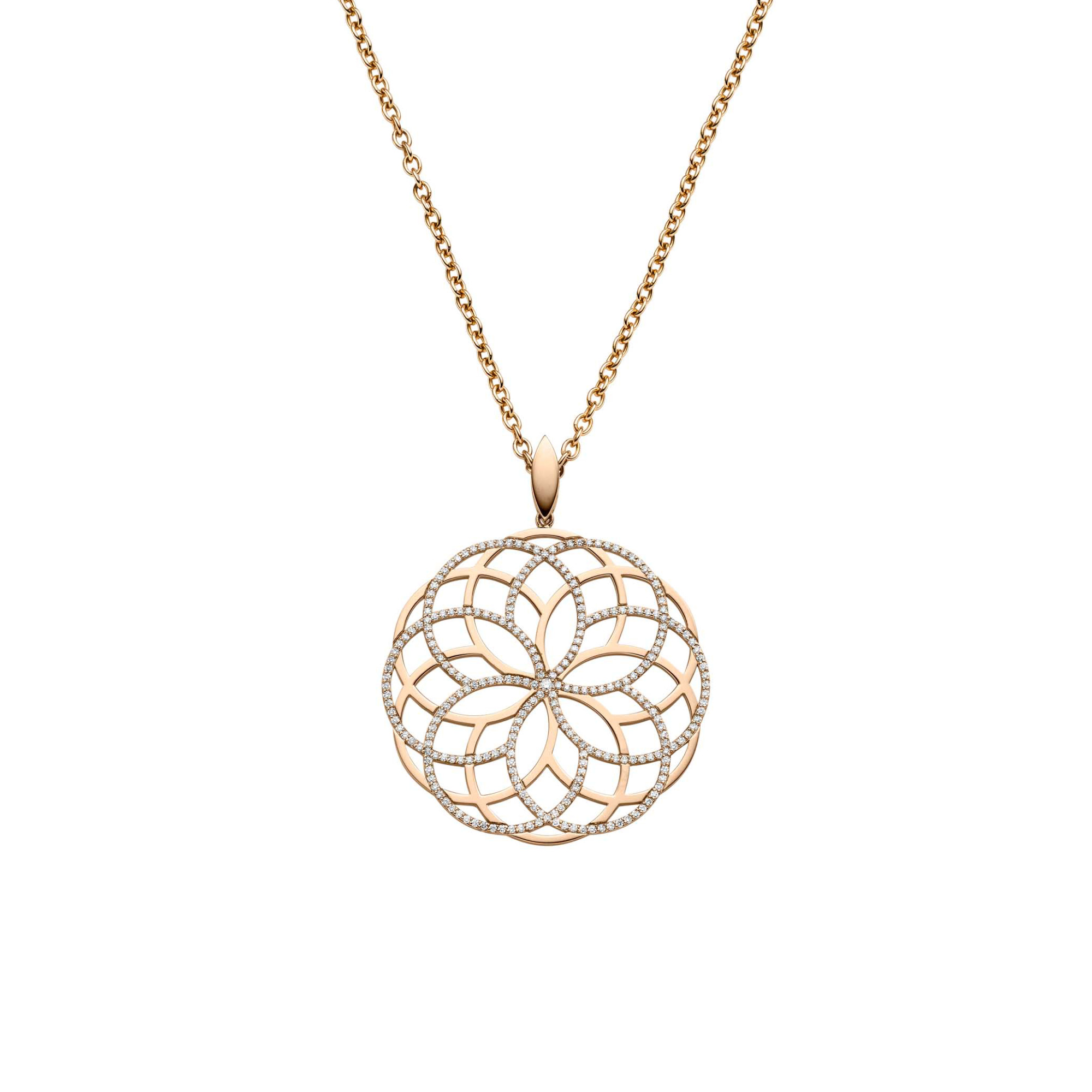 Ref. 21-0960373-1000 - The Mandala - ein Anhänger mit einzigartiger Ausstrahlung. Die Bewegung der Kreise in Rosé- und in Weißgold mit Brillanten, die ineinander übergehen, verdeutlichen den Gedanken der Linie Panta rhei, „alles fließt“, alles ist in Bewegung, „The Circles of Life“.