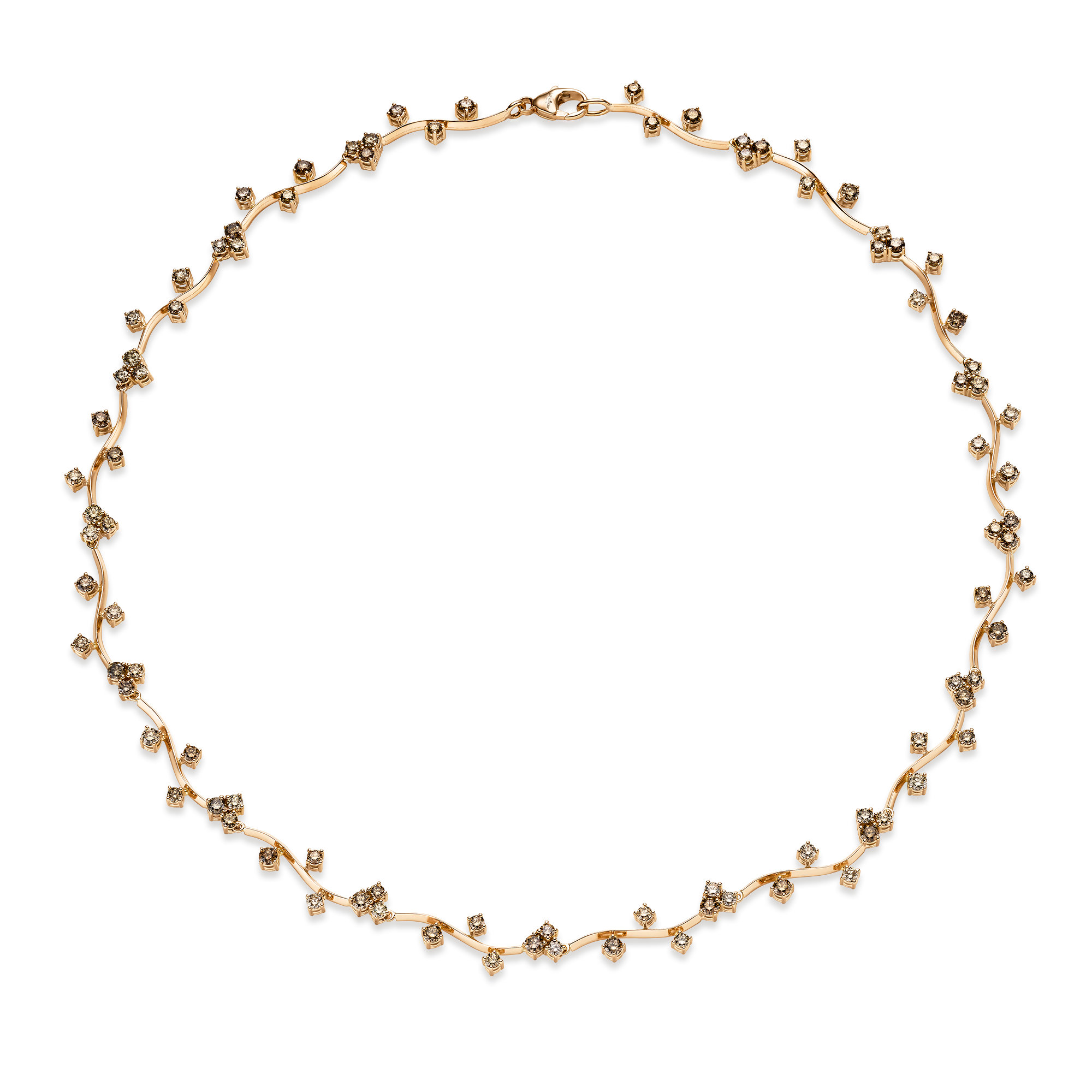 Ref. 31-0804173-5000 - Dieses besondere Collier legt sich wie ein hauchzarter Kranz aus Blüten auf die Haut und bleibt stets anschmiegsam und komfortabel. Seine exquisiten naturbraunen Diamanten scheinen dabei auf dem Dekolleté zu schweben. Ihr Farbenspiel und die unterschiedlichen Größen sorgen für Lebendigkeit und versprühen einen Charme, der die Schönheit der Natur widerspiegelt.