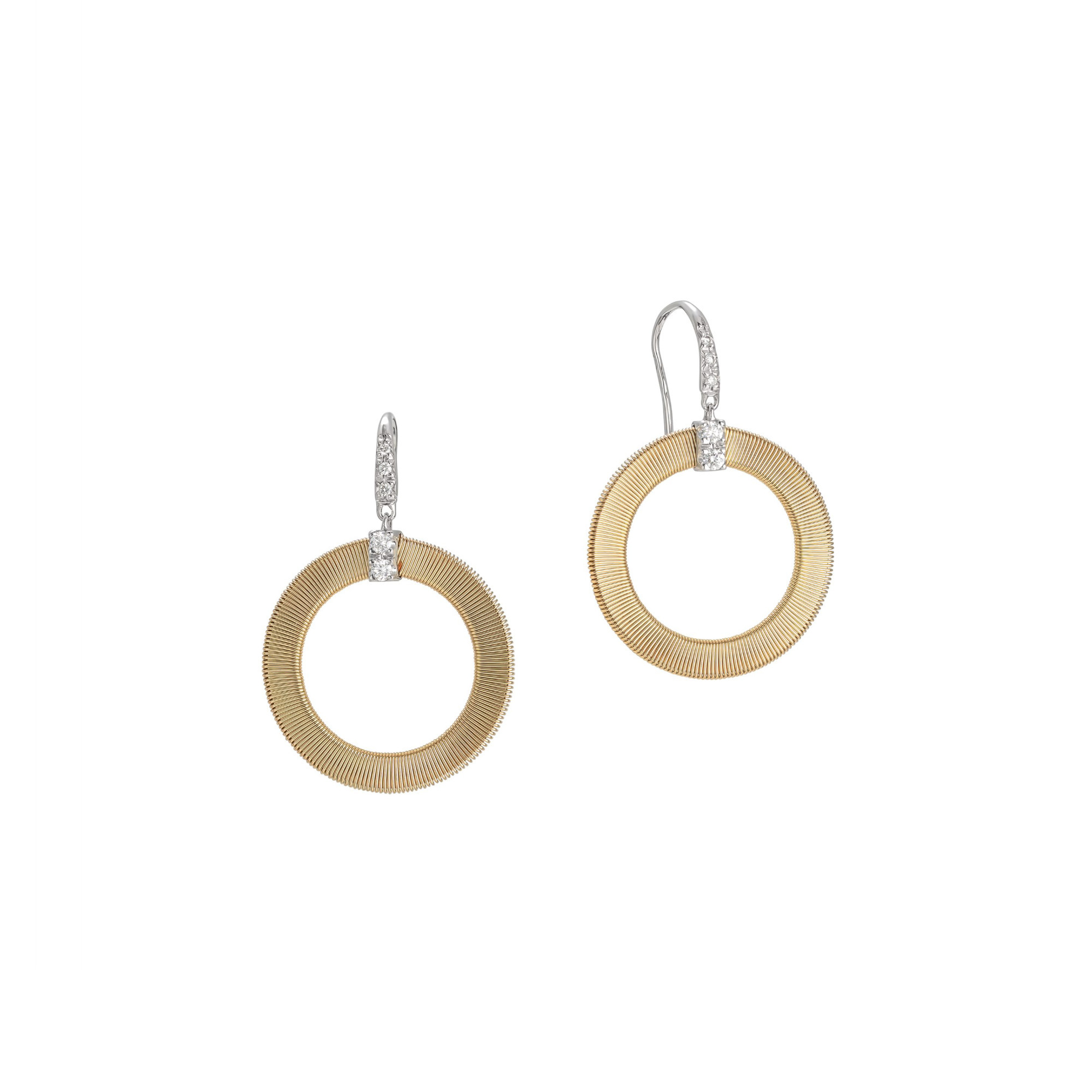 Ref. OG378-AB B YW - Dieser Ohrhänger aus 18-karätigem Gelbgold charakterisiert sich durch seine weiche, runde Linienführung. Er besteht aus einer Flachspirale und hat einen Haken mit Diamanten im Brillantschliff.