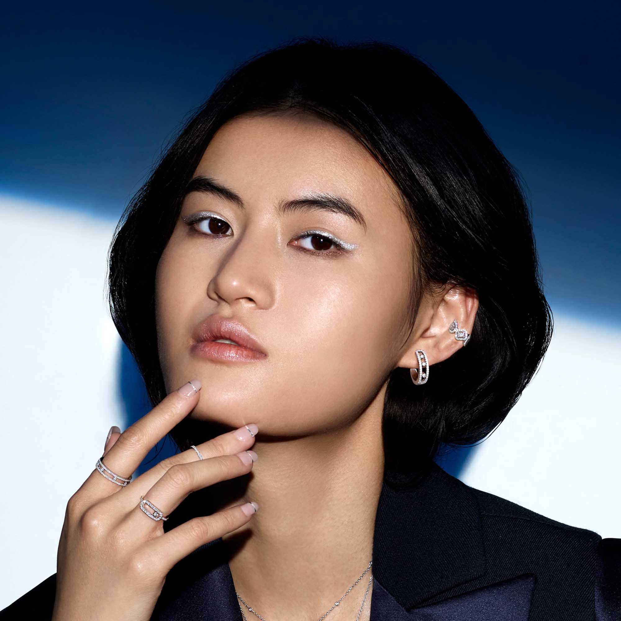 Ref. 04993-PG - Innerhalb von zehn Jahren, hat sich die Move Kollektion über den Status des „It“-Schmucks hinausentwickelt und geht nun in als ikonische Kollektion in die Schmuckgeschichte ein. Die Move Schmuckstücke sind voller Poesie, mit ihren drei Diamanten, die fest in ihren kostbaren Bahnen sitzen. Die Bewegung der Steine entsprang einer Kindheitserinnerung Valerie Messikas: „Als ich ein kleines Mädchen war, spielte mein Vater immer mit den Diamanten in seinen Händen, wenn er sie mir zeigte. Das Licht erweckte sie zum Leben und so konnte ich einen bunten Regenbogen in den Steinen sehen. Ich wollte diese Magie der Diamanten neu erschaffen“.