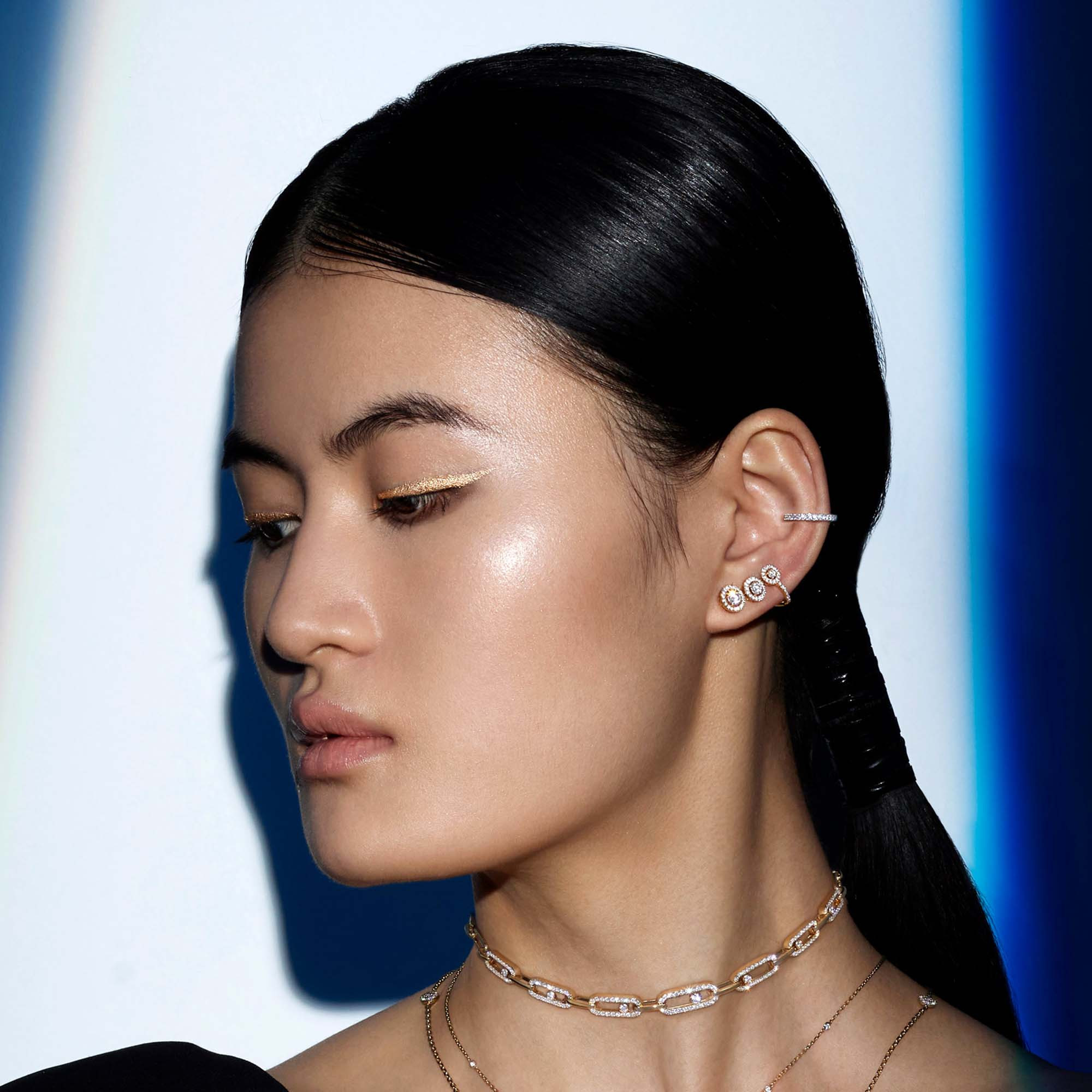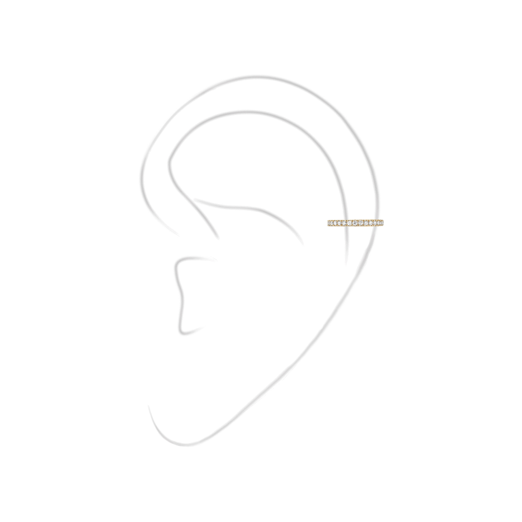Ref. 10031-YG - Dieser einzelne Diamant-Ohrclip setzt auf den „falsches Piercing“-Trend und sitzt an der Knorpelmitte. Voller Sinnlichkeit erleuchtet der einzelne Diamant-Ohrring aus Gelbgold das obere Ohr. Werten Sie Ihren Look auf, indem Sie dieses Luxus-Schmuckstück mit anderen Modellen der Maison kombinieren.