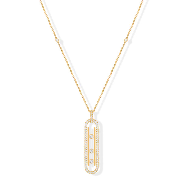 Ref. 10032-YG - Mit ihrem einzigartigen und starken Edelsteinschmuck-Design verzaubert die Move 10th Diamantkette aus Gelbgold ihre Betrachter. Die beweglichen Move Diamanten übernehmen die Linien des unverkennbaren Designs der Maison und werden von zwei Linien aus sonnigem 18 Karat Gelbgold ausgeglichen. Unser Stil-Tipp: Als wahrer Glücksbringer wird diese Diamant-Kette für Damen allein oder im Einklang mit dem angesagten Stacking-Trend in Kombination mit anderen Schmuckstücken oder Modellen der Kollektion getragen. Dank ihrem schiebbaren Kettensystem kann die Länge Tag für Tag an unser Dekolleté angepasst werden.