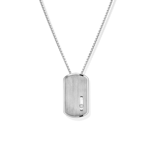 Ref. 12538-TN - Die Schmuckkollektion Move Titanium avancierte innerhalb kürzester Zeit zum unerlässlichen Must-have der Herrenmode. Hier entwarf Valérie Messika eine Halskette mit militärischen Anklängen, die eine rockige Note in die Kollektion einbringt. Bei dieser Luxus-Herrenkette wurde das gebürstete, von Natur aus hellgraue Titan mit einem beweglichen weißen Diamanten kombiniert, was einen Ton-in-Ton-Effekt voll schlichter Eleganz erzeugt. Diese auch in den Titan-Farbvarianten Schwarz und Graphit erhältliche Diamantkette ist ein perfektes Accessoire, um jeden Look aufzupeppen.