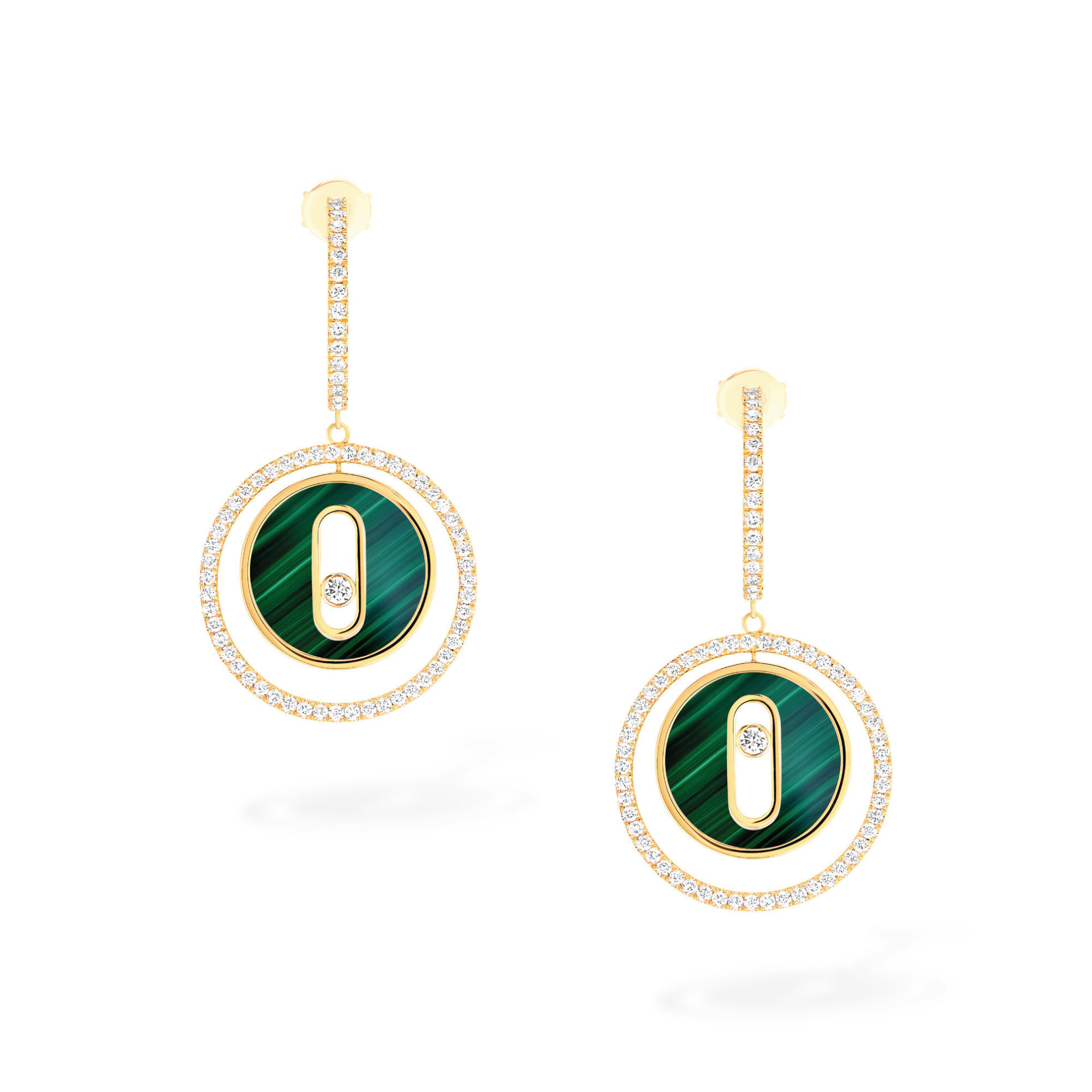 Ref. 12965-YG - Lucky Move ist eine Neuinterpretation der Glücksmedaille und eine Schmuckkollektion, die Valérie Messika als Objekt der Selbstbestätigung konzipiert hat. Jeder Steinfarbe ist ein Mantra zugeordnet. Neu in der Kollektion sind die Ohrhänger aus Gold, Diamanten und Edelsteinen. Runden Sie Ihren Stil mit diesen Ohrringen aus Gelbgold und Malachit ab, die eine strahlende Harmonie zwischen Diamanten und farbigen Steinen offenbaren. Was auch immer Ihre Ambitionen sind, es ist möglich, sie zu erreichen, vorausgesetzt, diese Version von Ihnen stimmt mit Ihren Werten überein. Be Authentic ! So lautet das Mantra dieses Schmuckstücks. Mit diesen Diamantohrringen für Damen können Sie Ihre Authentizität unterstreichen.