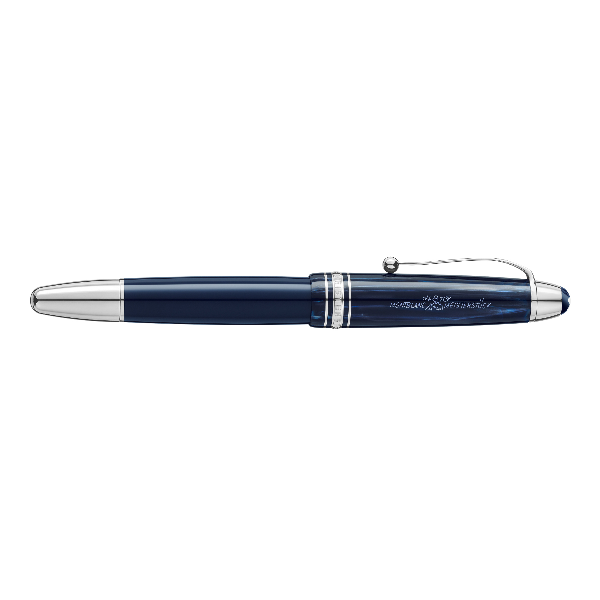 Ref. MB131339 - Die Kollektion ist von Kreationen aus den frühen Jahren inspiriert, die in den Archiven verwahrt sind, sowie von Designmerkmalen, die die ersten Meisterstück Editionen auszeichnen. Die kunstvoll aus blauem Edelharz gefertigte Kappe zeichnet sich durch ein fließendes Muster aus, das von Kreationen früherer Tage inspiriert ist und das Auflösen von Tinte auf Papier zeigt. Es bildet einen zauberhaften Kontrast zu den platinierten Beschlägen. Der Clip ist eine Hommage an die frühen Clipformen, die einige der ersten Meisterstück Schreibgeräte auszeichnen, und verströmt eine gewisse Nostalgie. Bei genauerem Hinsehen entdeckt das ursprüngliche Meisterstück Logo, das seit seiner Einführung die Kappe als Symbol für höchste Qualität ziert. Verziert ist diese Jubiläumsedition mit einem speziellen Kappenring, der die Jahre 1924 und 2024 zeigt. Auf weitere 100 Jahre höchsten Anspruch mit dem Meisterstück