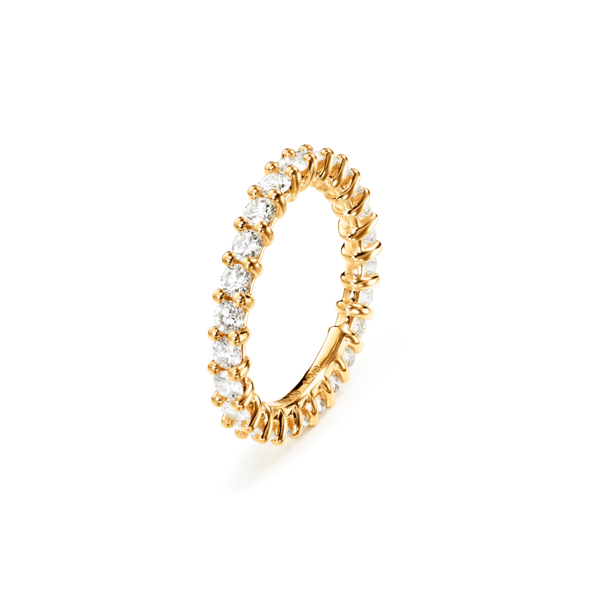 Ref. A1659-401 - Entworfen von Ole Lynggaard. Der Celebration-Eternity-Ring wurde aus 750/- poliertem Gelbgold mit 24-26 Diamanten in Krappenfassung mit insgesamt 1,2-1,3 ct. TW. VS., je nach Größe, gefertigt. Von Goldschmiedemeistern von Hand gefertigt. Teil der Ole Lynggaard Copenhagen Engagement and Wedding Collection.
