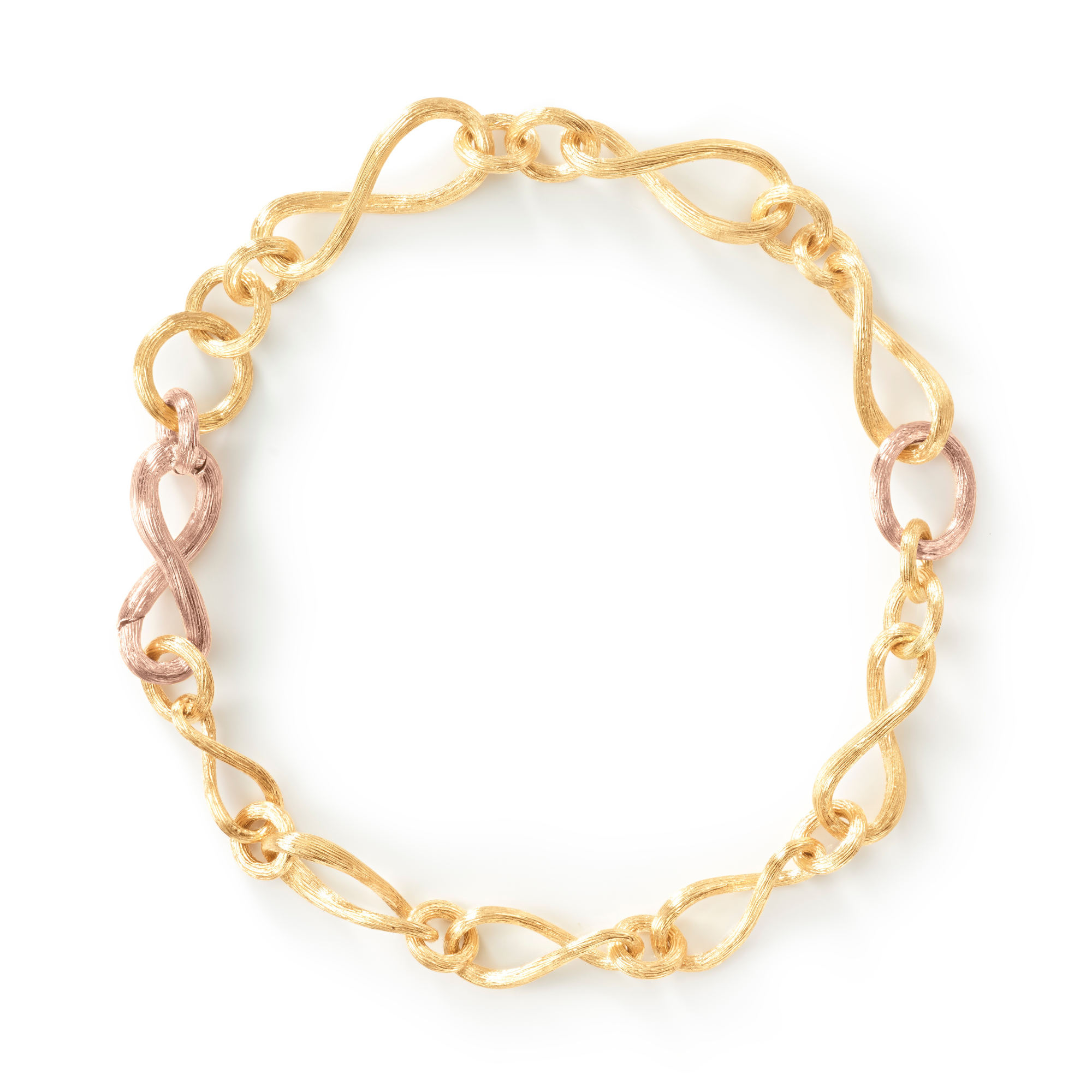 Ref. A1738-403 - Das von Charlotte Lynggaard entworfene Love-Armband, mini, ist aus 18-karätigem Gelb- und Roségold gefertigt. Die Gesamtlänge des Colliers beträgt 18 cm. Die einzelnen Glieder haben unterschiedliche Größen. Die Goldoberflächen werden von Goldschmiedemeistern von Hand satiniert.
