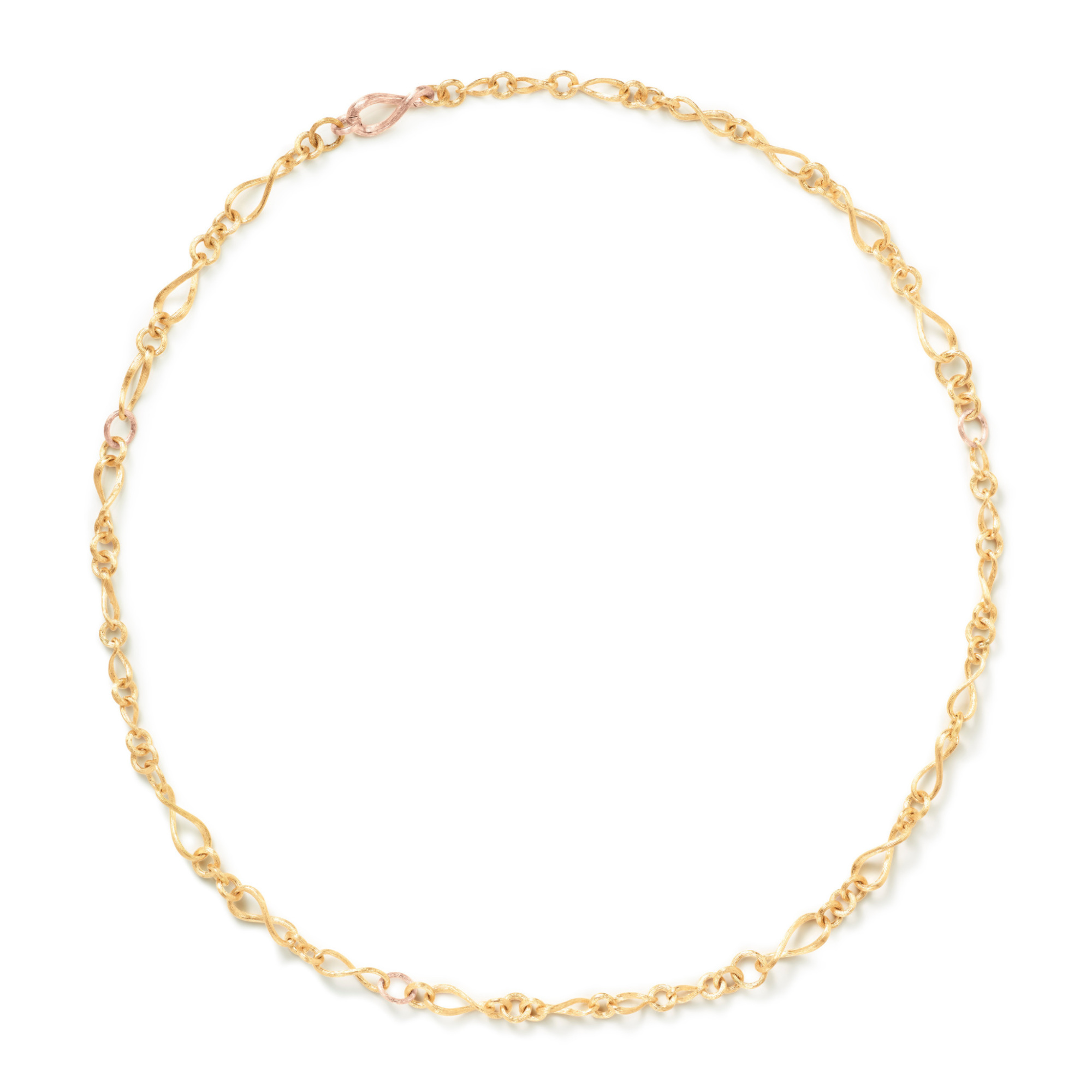 Ref. A1738-409 - Das von Charlotte Lynggaard entworfene Love-Collier, mini, ist aus 18-karätigem Gelb- und Roségold gefertigt. Die Gesamtlänge des Colliers beträgt 60 cm. Die einzelnen Glieder haben unterschiedliche Größen. Die Goldoberflächen werden von Goldschmiedemeistern von Hand satiniert. Teil der Love-Kollektion.