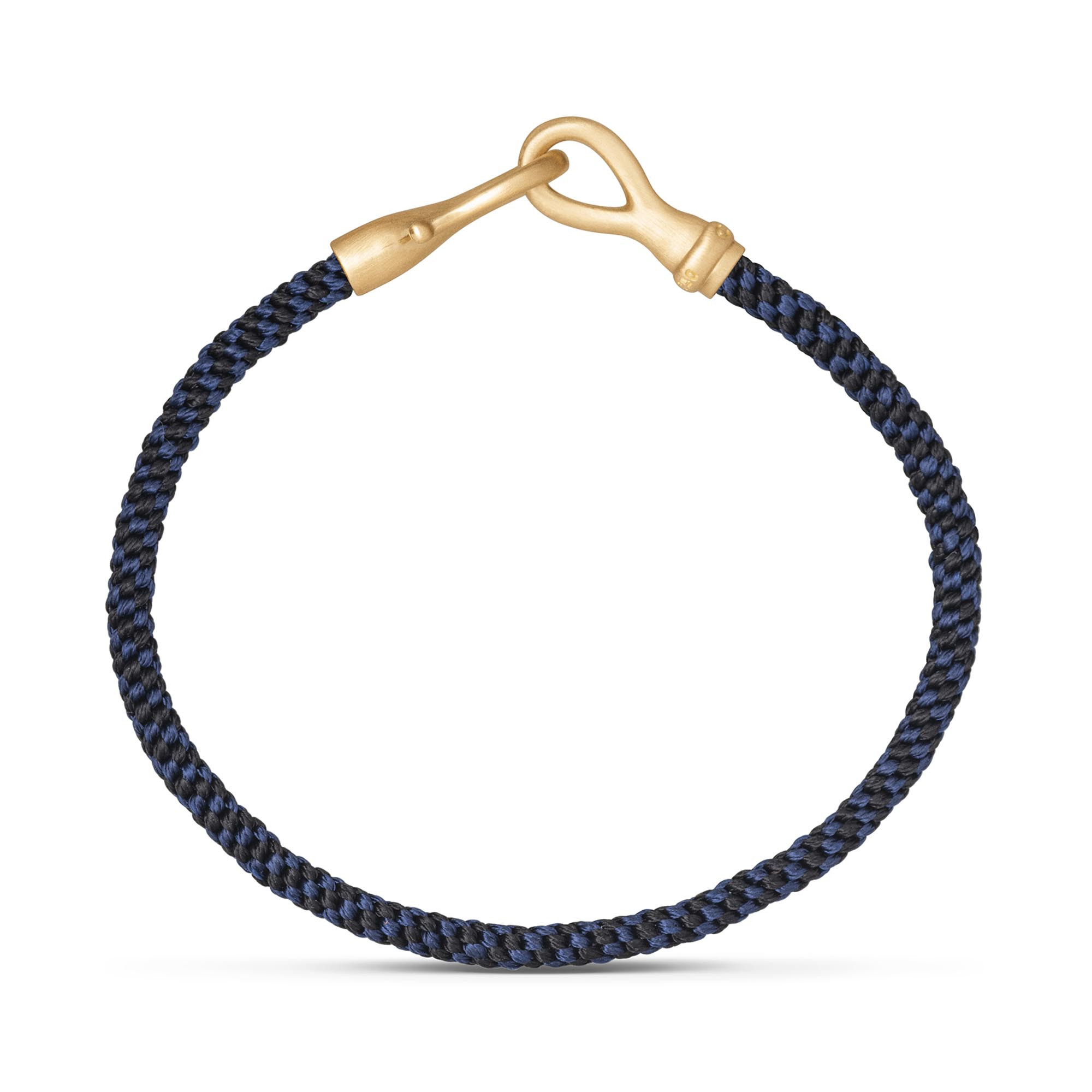 Ref. A3046-401 - Das von Charlotte Lynggaard entworfene Men's Life Midnight armband ist handgeknüpft mit 8 Fäden, die wiederum jeweils aus 6 handgefärbten Fäden gewebt sind. Der markengeprägte Hakenverschluss wird von Goldschmiedemeistern aus gehärtetem, gebürsteten 750/- Gelbgold handgefertigt. Erhältlich in 18, 19, 20 oder 21cm Länge. Teil der Life Collection.