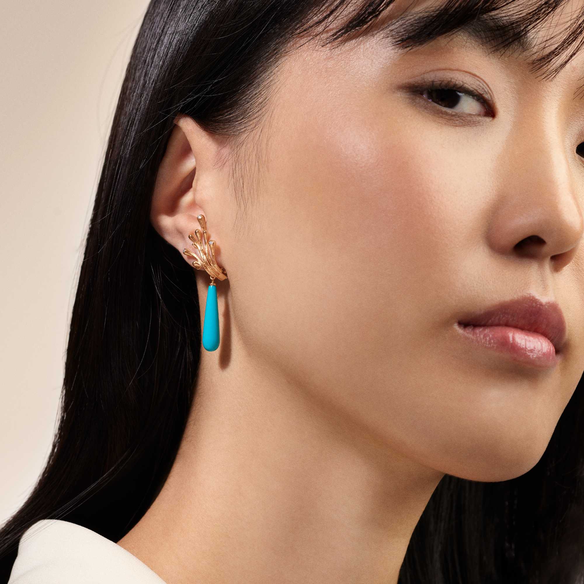 Ref. A3081-406 - Einhänger-Haken 18 Karat Gelbgold mit türkisfarbenem Cabochon-Tropfen 22x6mm Paar