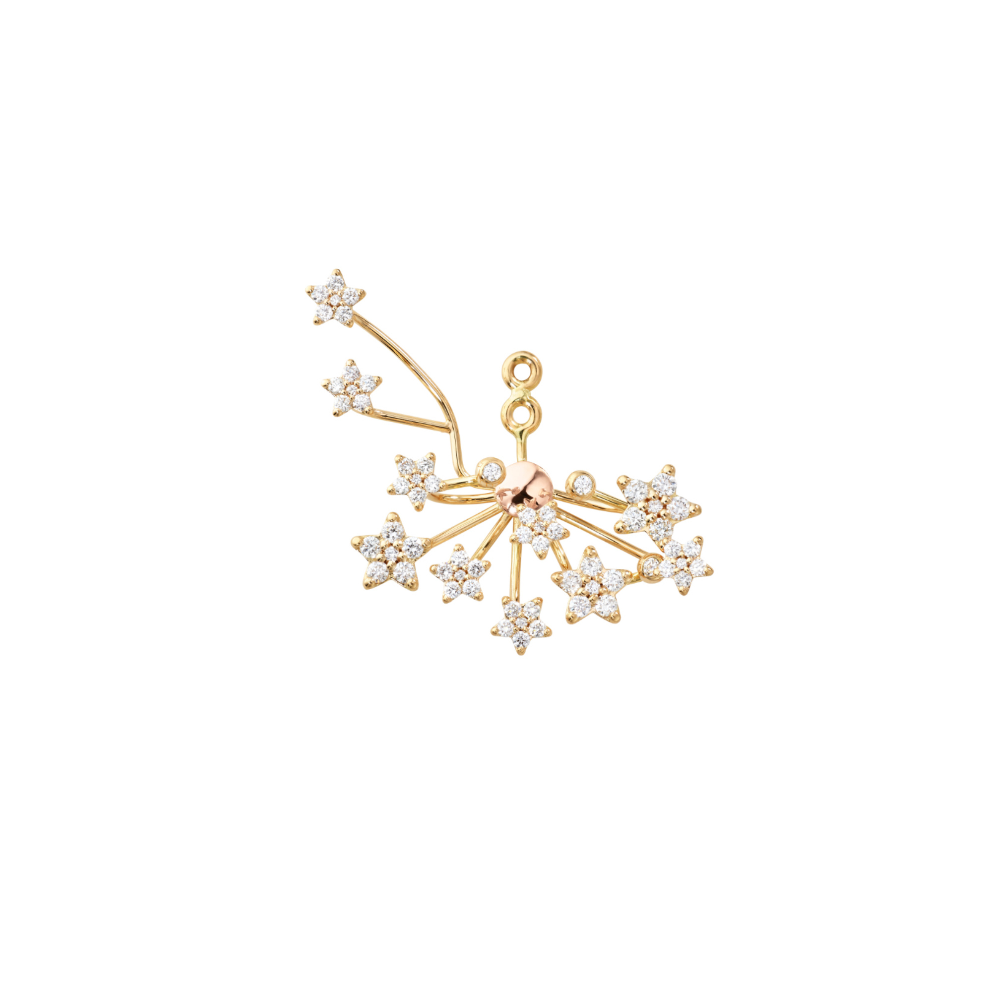 Ref. A3138-401 - Dieser von Charlotte Lynggaard entworfenen Shooting Stars-Ohrring-Einhänger ist aus 750/- Gelbgold gefertigt und mit 63 Diamanten von insgesamt 0,45 Karat tw/vs besetzt. Das Design stellt einen Sternenhimmel dar. Jeder Stern ist mit sechs Diamanten im Brillantschliff besetzt, die von der Oberfläche abgehoben sind, um Licht durch die Facetten dringen zu lassen. Die Goldoberflächen werden von Goldschmiedemeistern handpoliert. Der Shooting Stars-Ohrringanhänger lässt sich hinter dem Ohrläppchen an einem Shooting Stars-Ohrstecker anbringen und kann mühelos an unterschiedlichen Ohrringen befestigt und wieder abgenommen werden. Der Anhänger ist sowohl in linker als auch in rechter Ausführung erhältlich. Als Einzelstück verkauft. Teil der Shooting Stars-Kollektion.