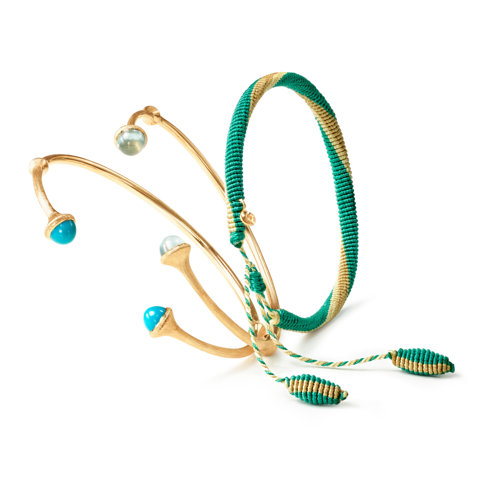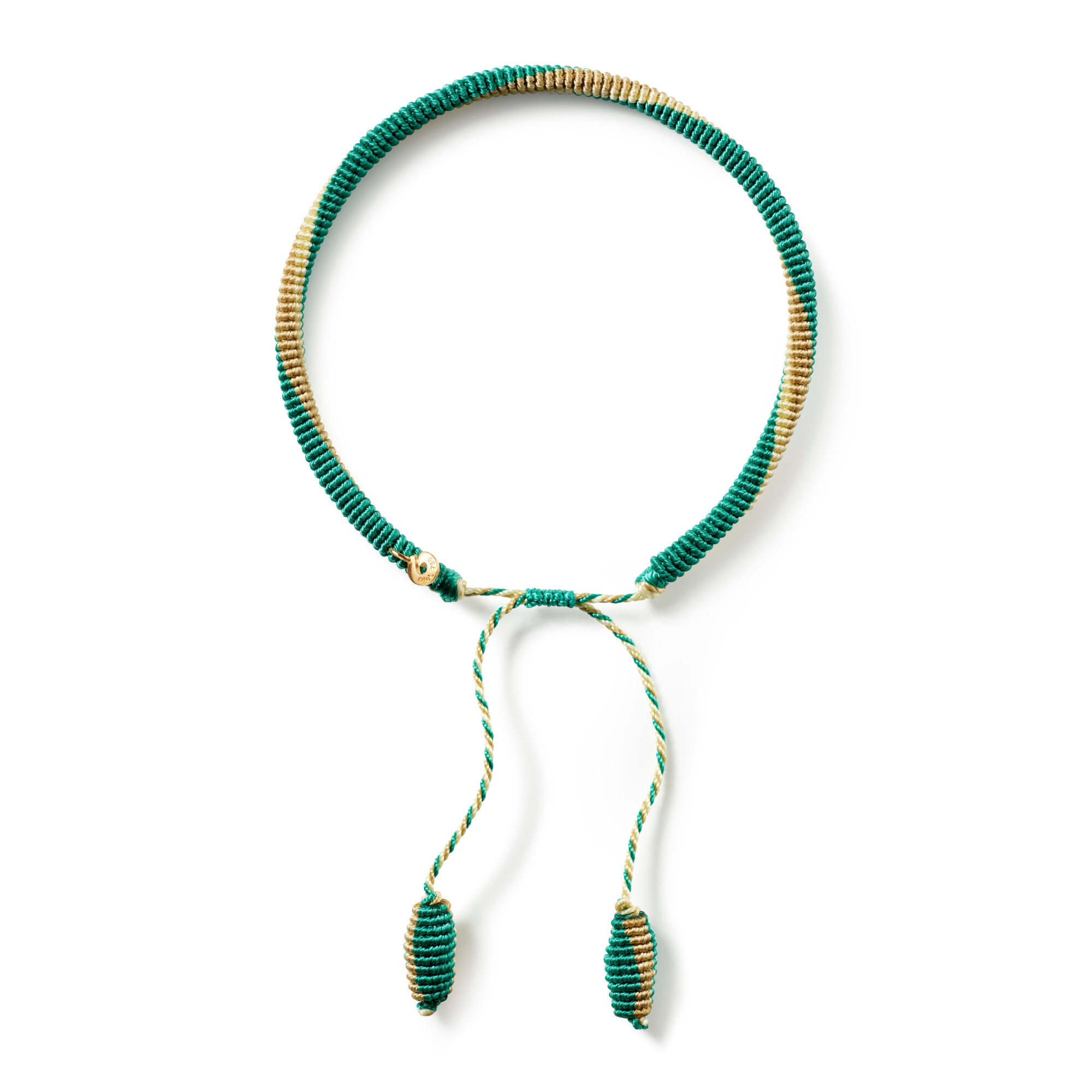 Ref. A3243-002 - Dieses von Charlotte Lynggaard entworfene Life-Armband Laguna besteht aus neun handgeknüpften Strängen, die jeweils aus sechs handgefärbten Nylonfäden gefertigt und mit einem dezenten Anhänger aus 18-karätigem Gold versehen sind. Ein Schiebeknoten zum Verstellen sorgt für einen bequemen Sitz. Die Schnüre enden in formschönen Details. Eine Größe. Teil der Life-Kollektion.