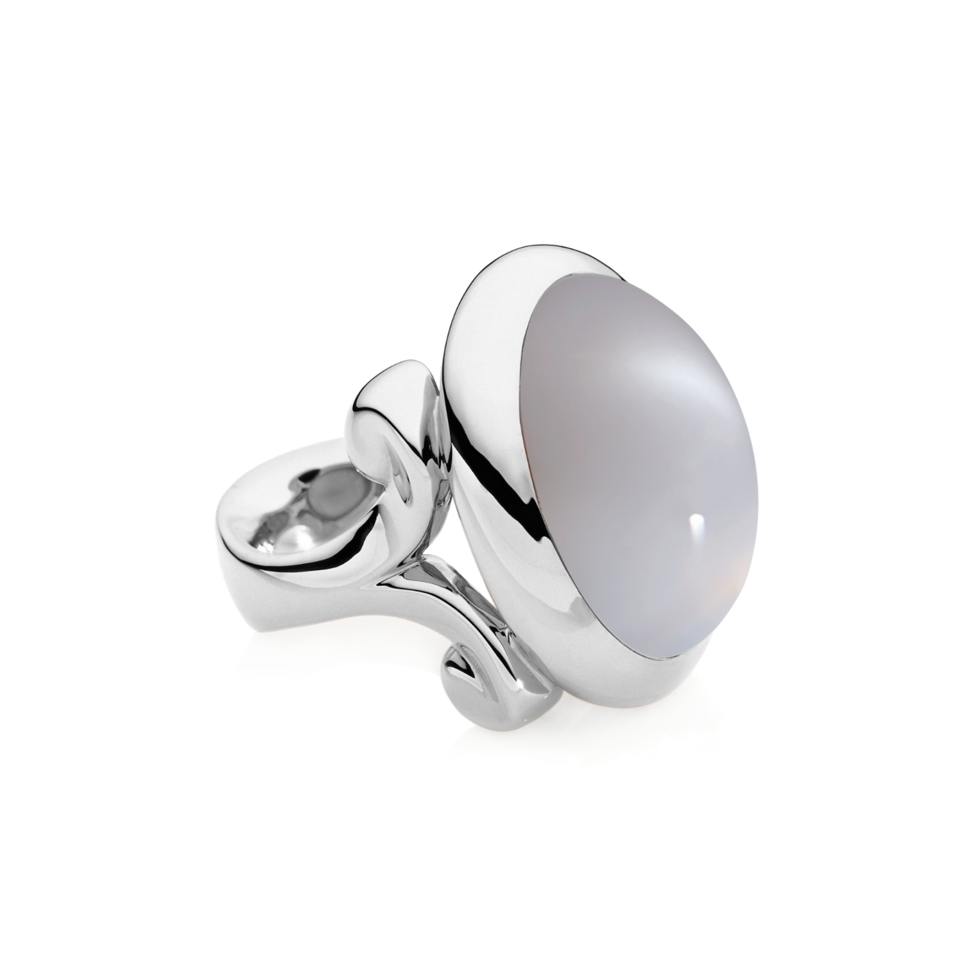 Ref. R-HG-l-MoGr-wg - Der HIPPIE GLAM Large Ring präsentiert einen Grauen Mondstein im Cabochon-Schliff, gefasst in 18 Karat Gold. Seine organische Form verleiht eine lässige Eleganz. Vielseitig kombinierbar, lässt sich dieser Ring im Stack mit anderen tragen oder solo als modernes Statement inszenieren.