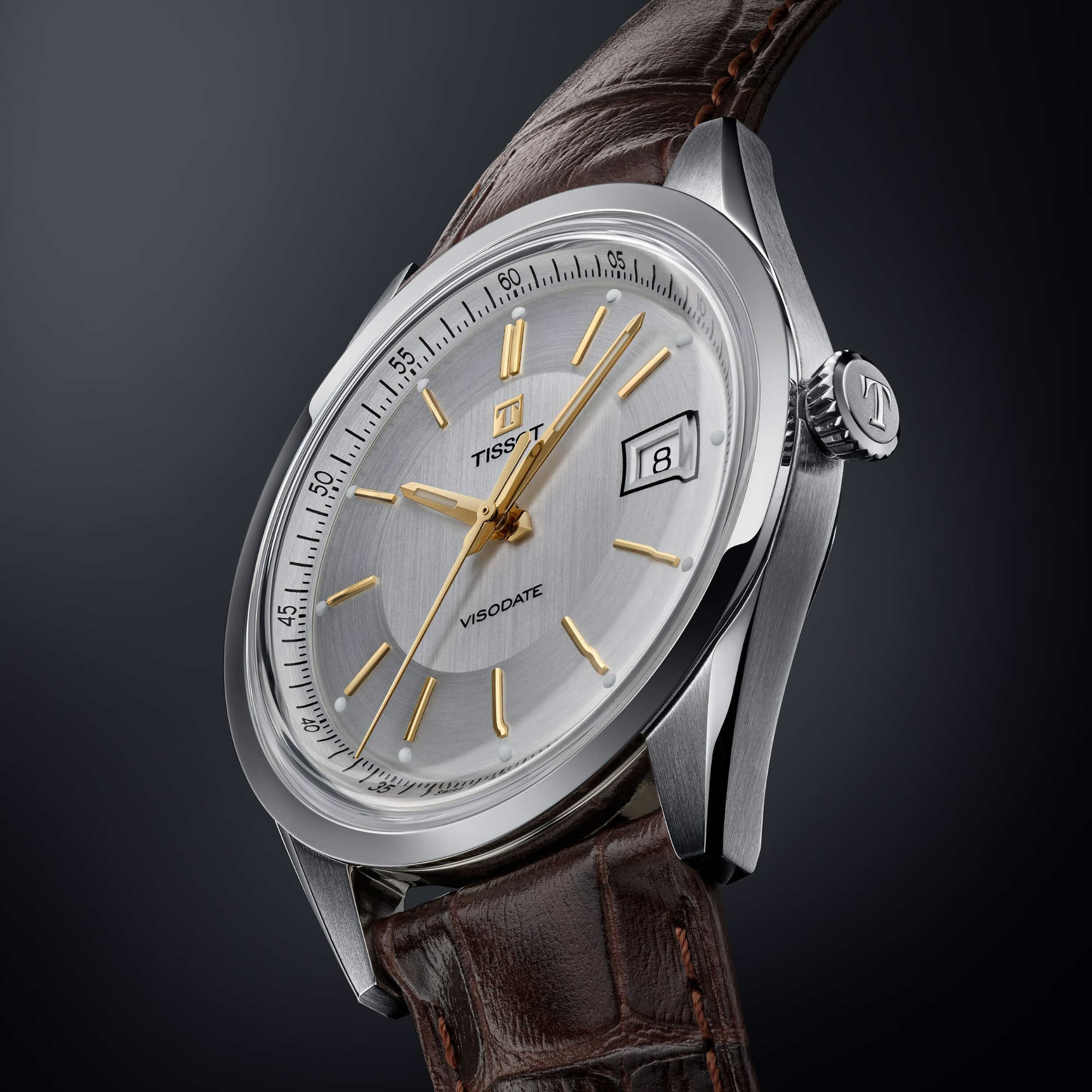 Ref. T157.407.16.031.00 - Die Tissot Visodate kehrt in einer 39-mm-Version zurück. Sie präsentiert sich als elegante Fortsetzung ihres Erbes: eine zuverlässige Uhr, die Sie mit demselben authentischen Charakter durch den Alltag begleitet, der die Identität des Modells seit Generationen prägt.